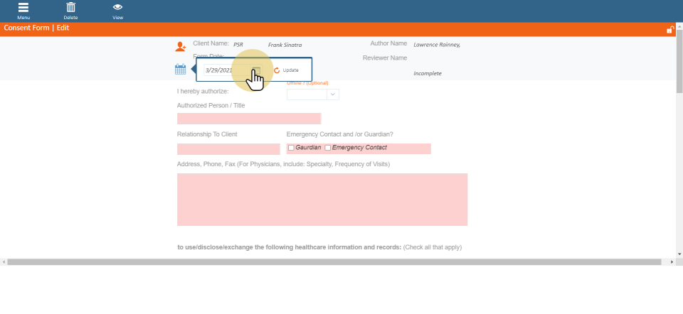 Choose date of form