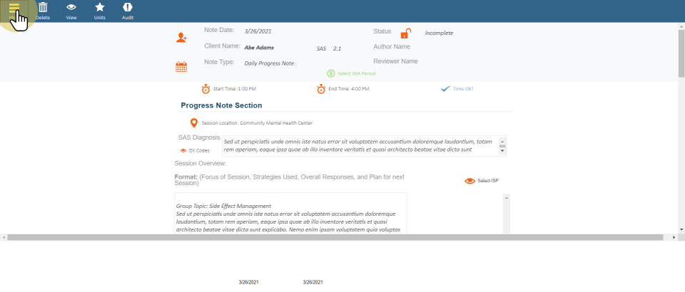 7.3. Creating a group SAS note