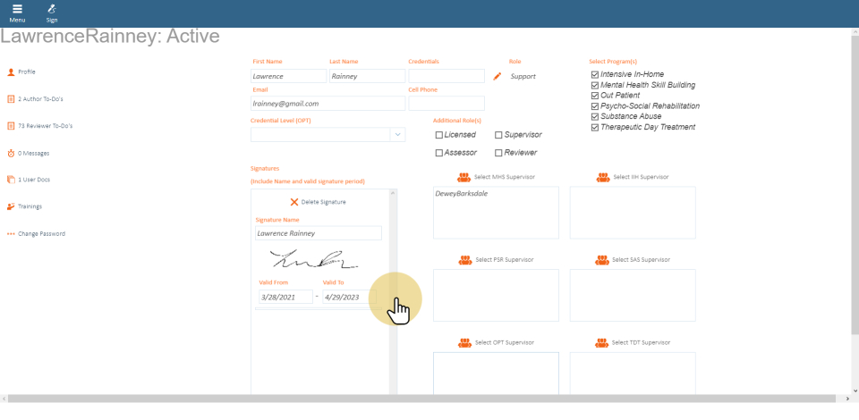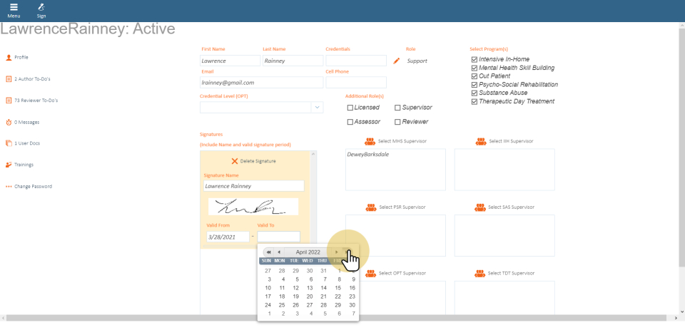 Valid dates are important. Based on the validation dates, the signature will appear on the form/note where the document falls in between the valid from and to date.
